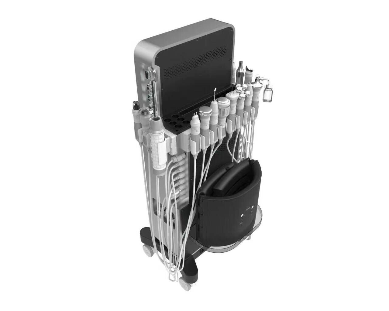 AquaDerm Platinum 17X este o platformă cosmetică profesională cu 17 funcții integrate, concepută pentru tratamente faciale complete: curățare profundă, hidratare intensivă, lifting, regenerare celulară, anti-acnee și uniformizare cutanată. Sistemul combină tehnologii avansate precum vacuum inteligent, ultrasunete, microcurenți, radiofrecvență bipolară, oxigen hiperbaric, crioterapie, fototerapie LED și nano-infuzii dermice, oferind rezultate vizibile încă din primele ședințe.