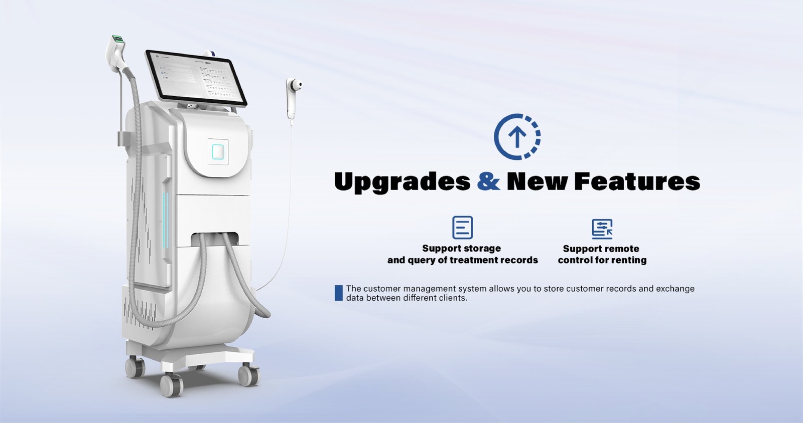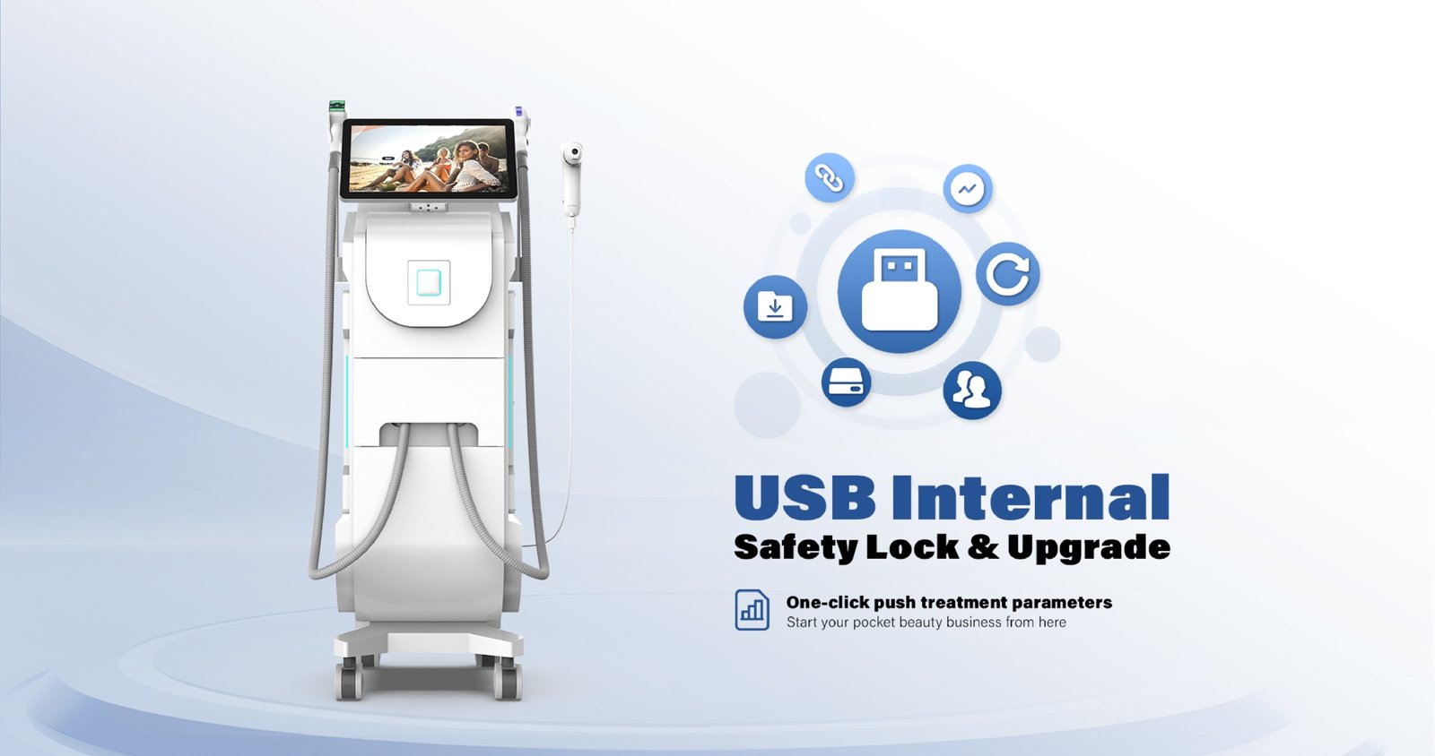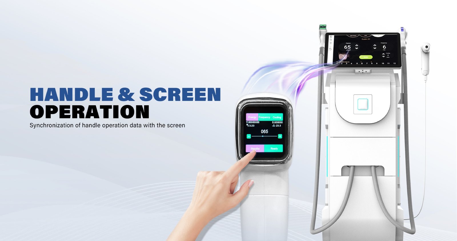 Echipamentul este dotat cu un ecran tactil de 15.6” (Android) cu interfață intuitivă și parametri predefiniți pentru diverse zone și tipuri de piele.