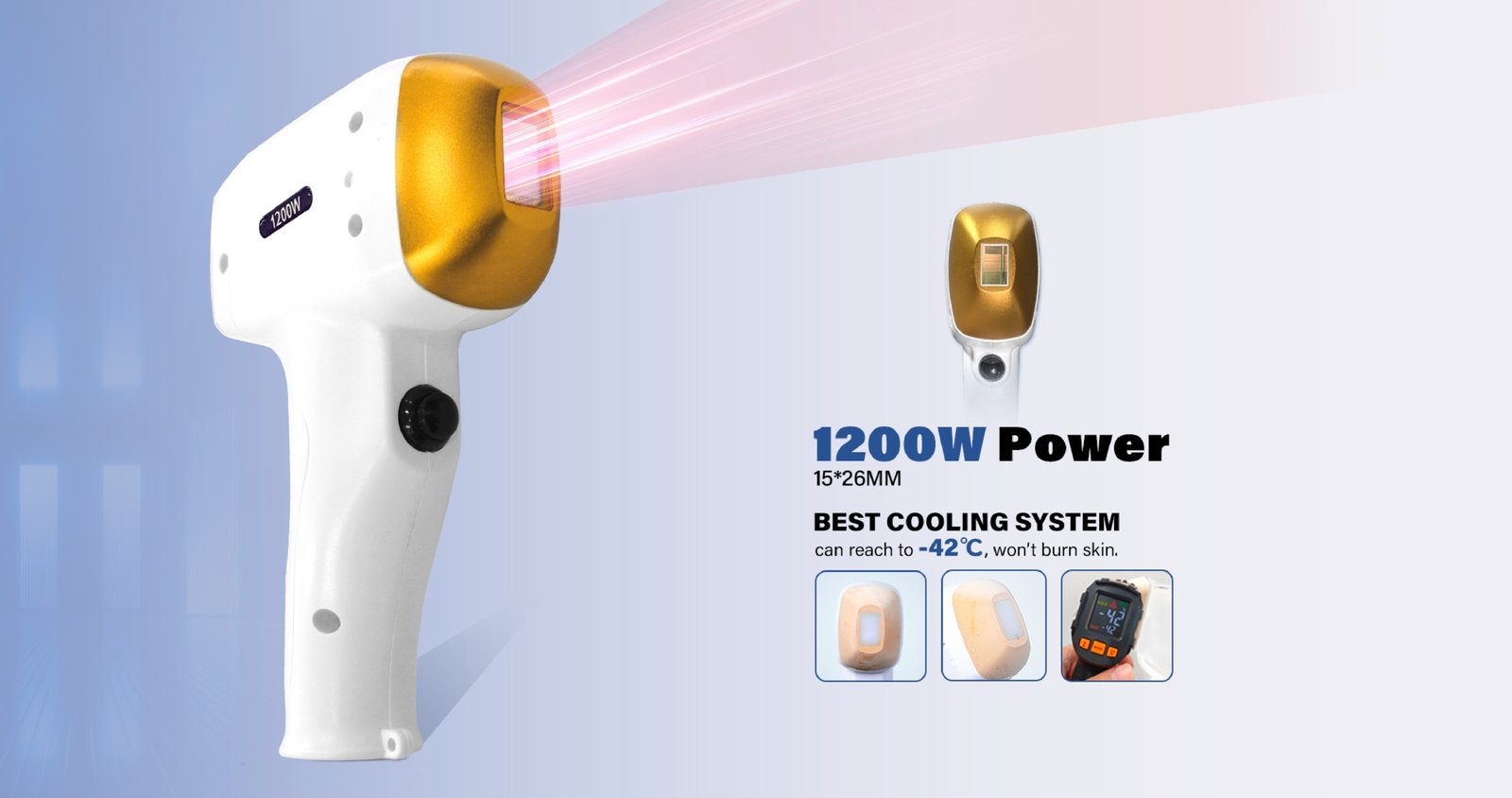 Sistemul ICE Plus Cooling reduce temperatura vârfului de safir până la -42°C, protejând pielea în timpul procedurii.