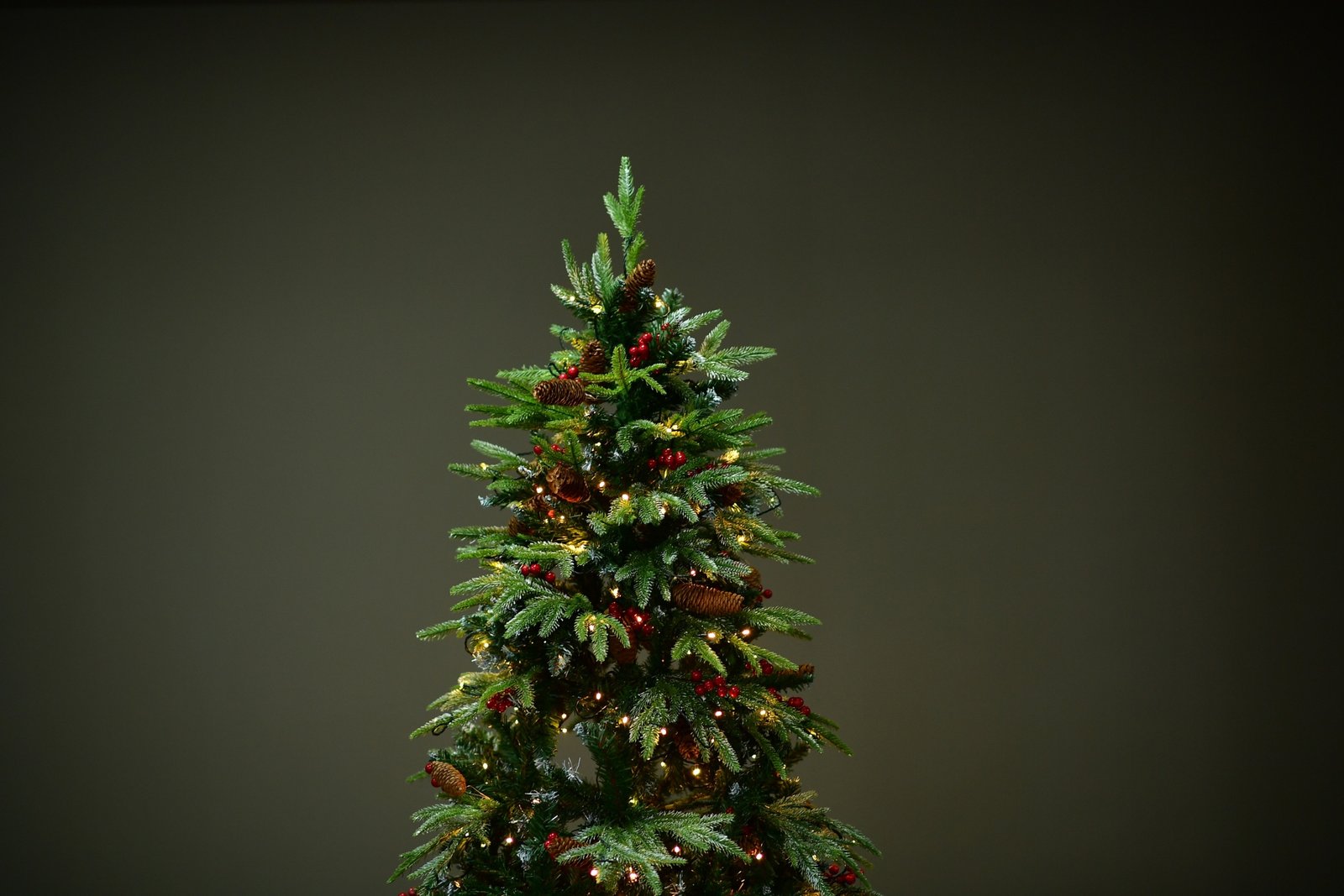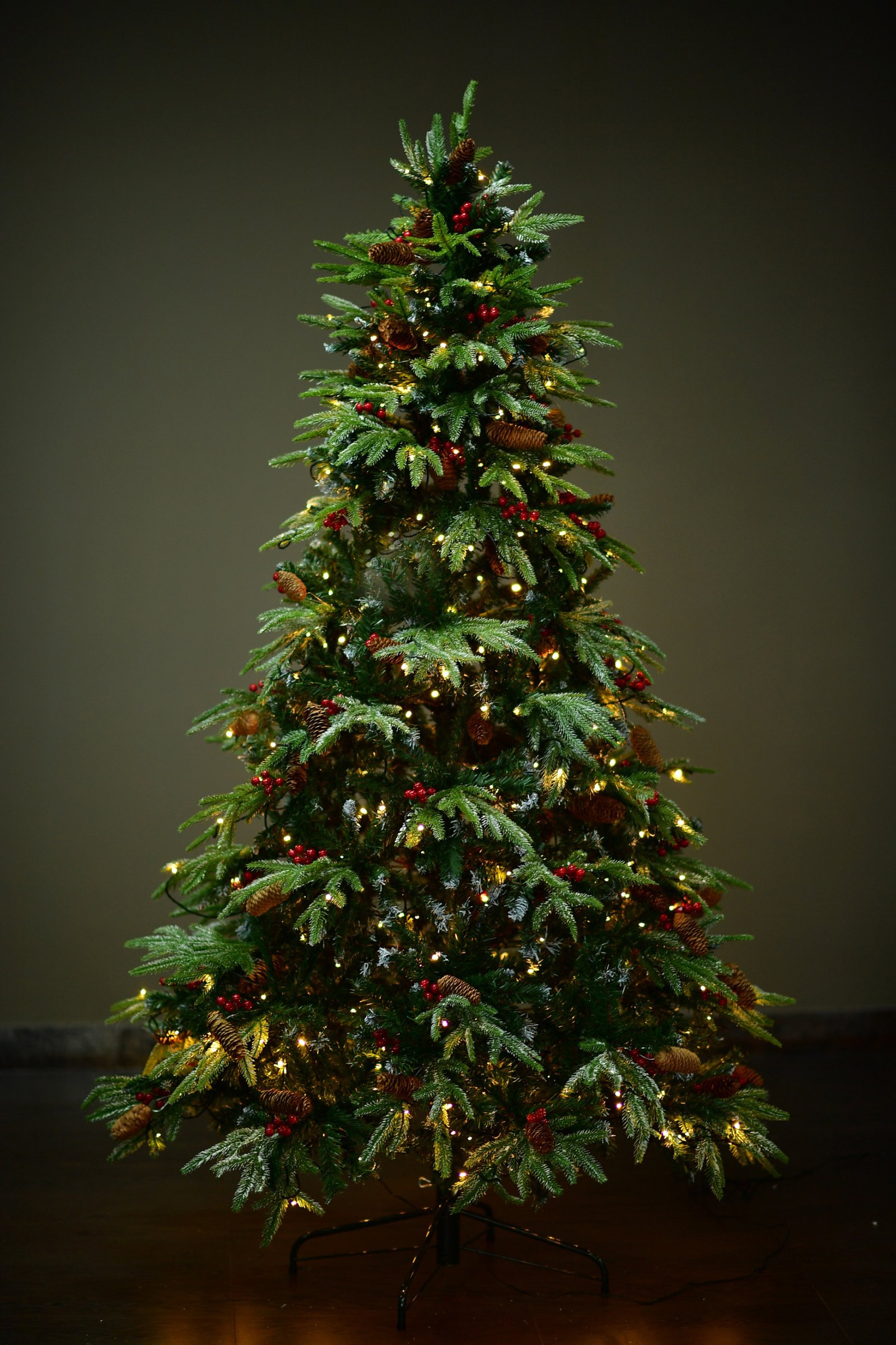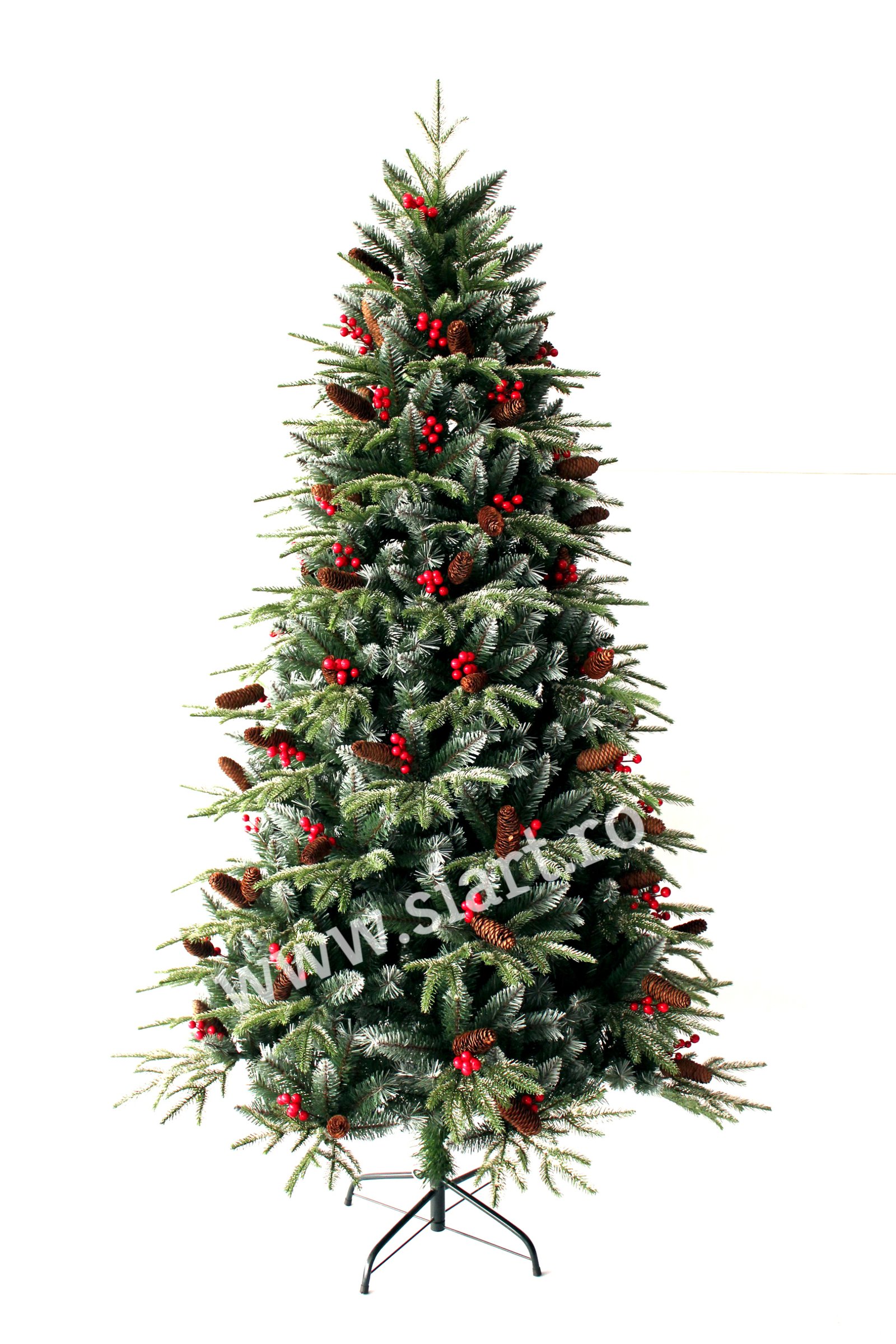 Brad artificial Vermont 2D+3D,210 cm,350 leduri, varfuri ninse, conuri si cirese