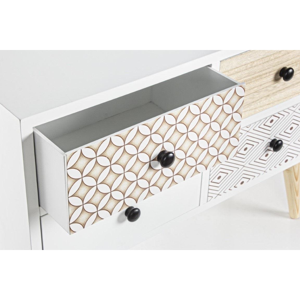 | Material | MDF, picioare din lemn de pin, manere din lemn, sertare cu model |