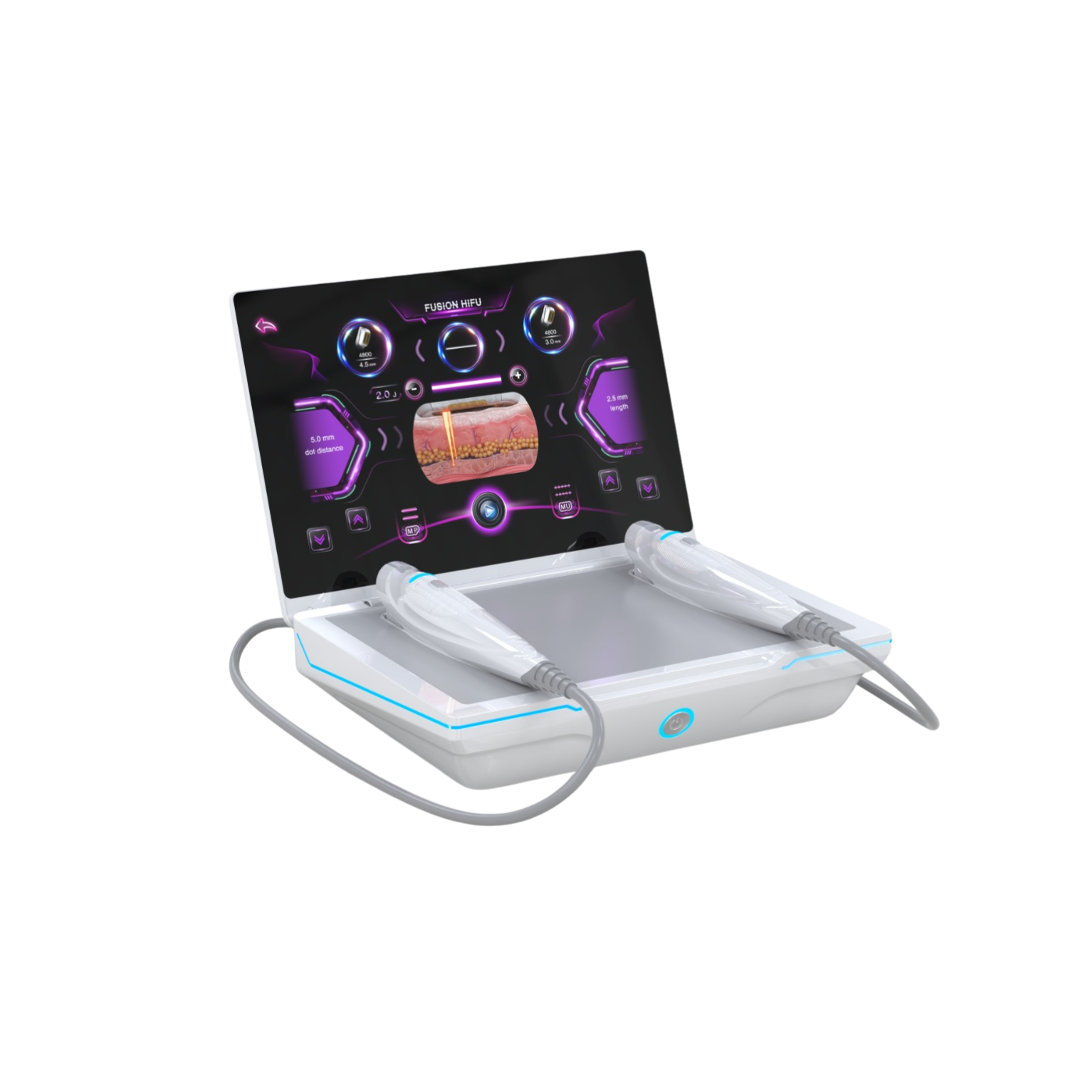 Dispozitivul este dotat cu un ecran extra-large de 15.6 inch și un sistem de control dual, oferind parametri ajustabili cu precizie și tratamente sigure, fără risc de arsură, datorită monitorizării inteligente a energiei și temperaturii.