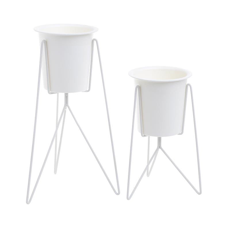 Adauga la Lista De DorinteComparaSet De 2 Ghivece Cu Suport, Baza Metalica De Culoare Alba.
